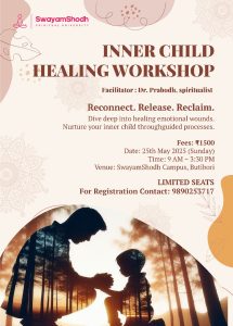SwayamShodh Spiritual University invites you to join a transformative workshop designed to help participants, reconnect with their inner child—the part of us that holds our earliest emotions, unmet needs, and subconscious patterns. Let us begin the powerful journey of healing past wounds and cultivating self-love and emotional freedom.